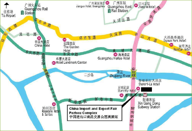 Drop-off: at China Hotel in Guangzhou and take taxi (20 mins) or Metro (from Gongyuanqian Station to Xingangdong Station) to exhibition venue |